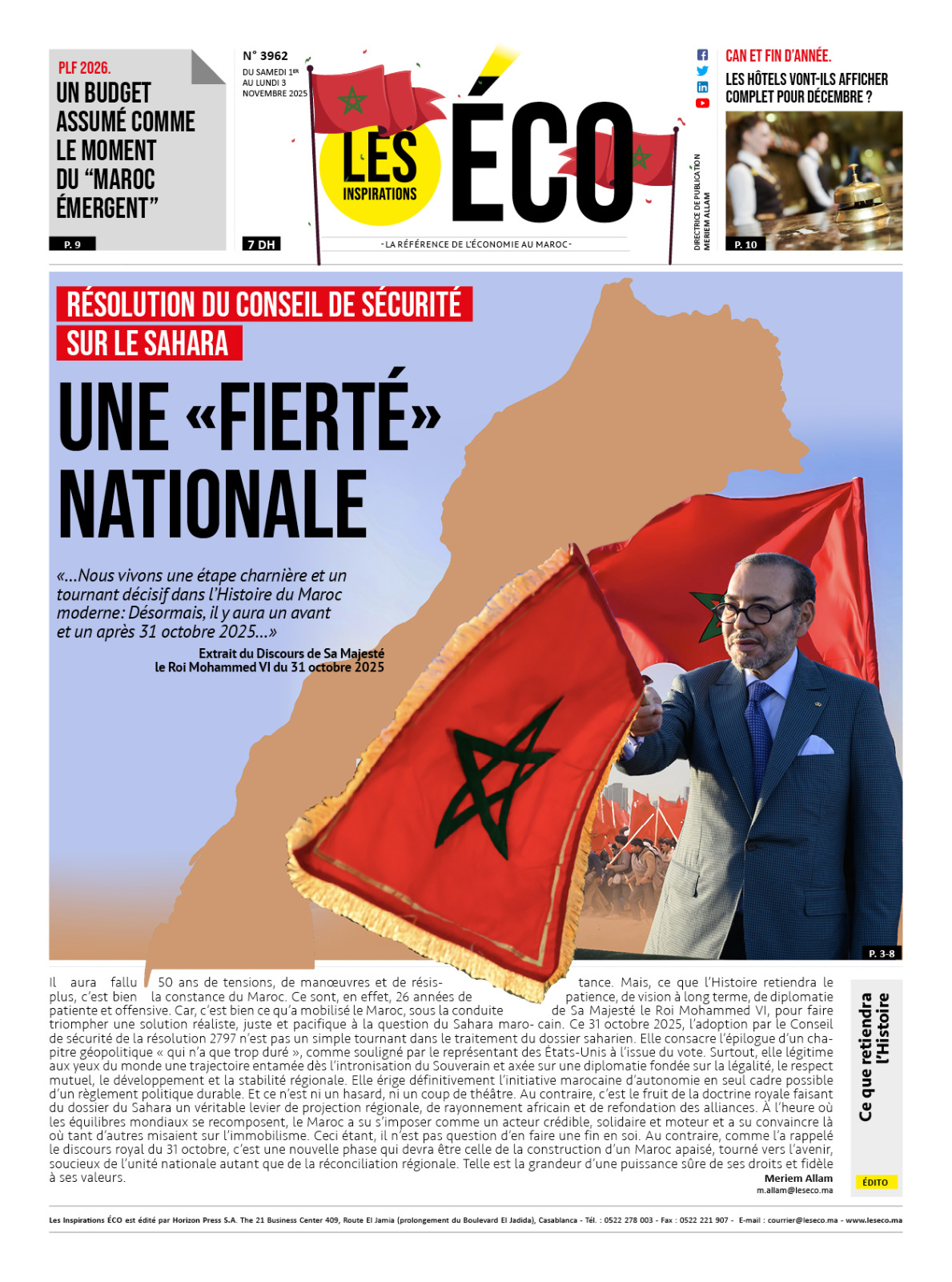 Notre dossier revient en profondeur sur cette allocution royale, en proposant un décryptage détaillé, à la lumière des enjeux internes, régionaux et internationaux qu’elle éclaire avec une clarté souveraine. Cette édition spéciale explore également les ressorts géopolitiques de la décision onusienne, à travers une lecture contextualisée du vote, l’analyse des positionnements des grandes puissances, et l’impact stratégique sur les équilibres régionaux.